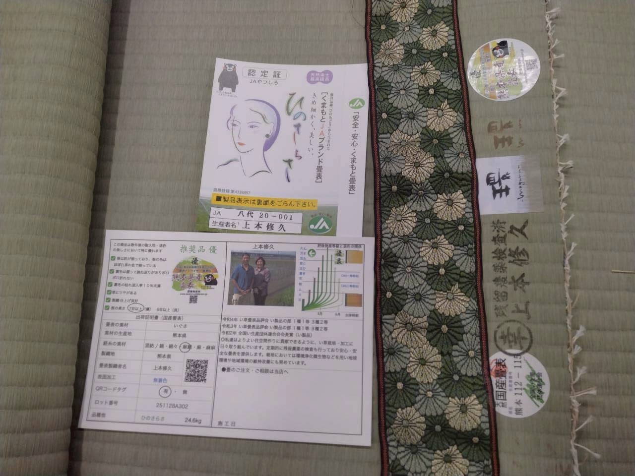 アレルギーに悩まれているお客様で、上本さんのい草づくりへの姿勢(減農薬農法)にひかれ、お選びいただいた畳表は、上本さんの畳表です。