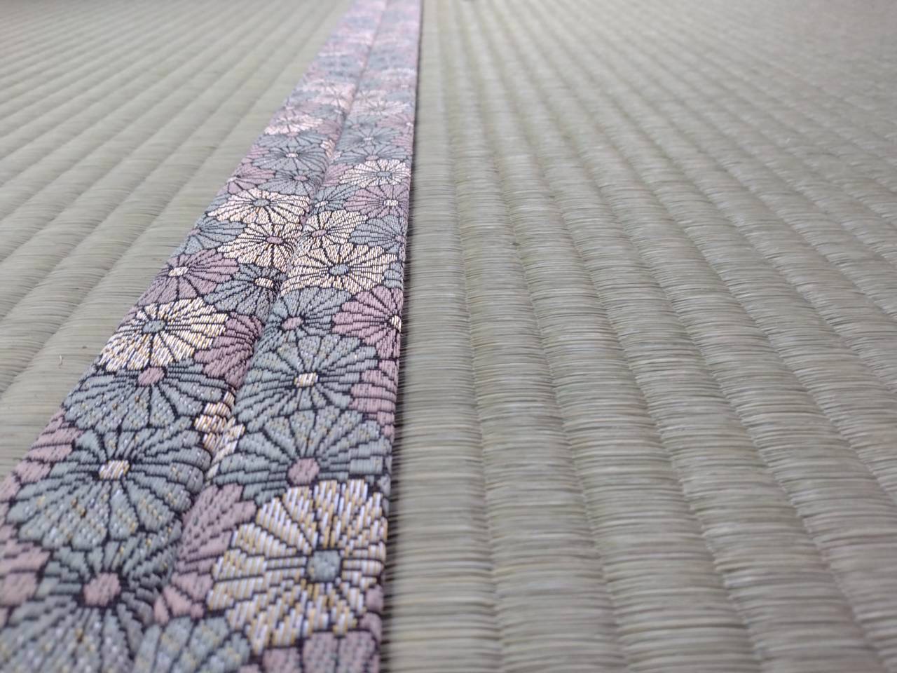 上本さんの「銀虎仕様:ひのさらさ」× 畳縁は「大宮縁 織部 No7」