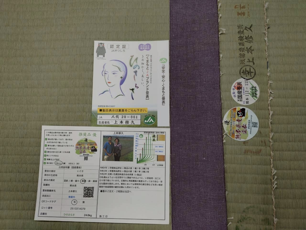 上本さんの「銀虎仕様:ひのさらさ」× 畳縁は「大宮縁 ラン ラベンダー」