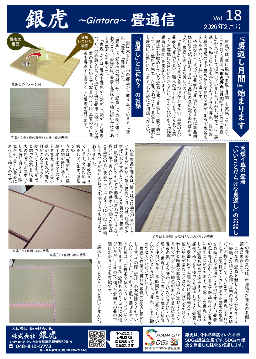 2月・3月は銀虎裏返し月間です!! ~『銀虎~Gintora~畳通信』vol.18・2026年2月号