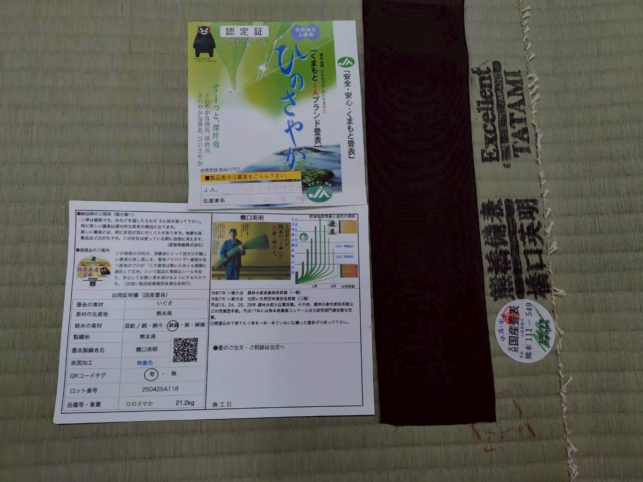 施工後は、畳表、畳縁で大きく変わったお部屋の雰囲気、仕上がりと、大変お喜びいただけました。橋口さんの想いの詰まった畳表をしっかりとお届けでき、ホッとしております。